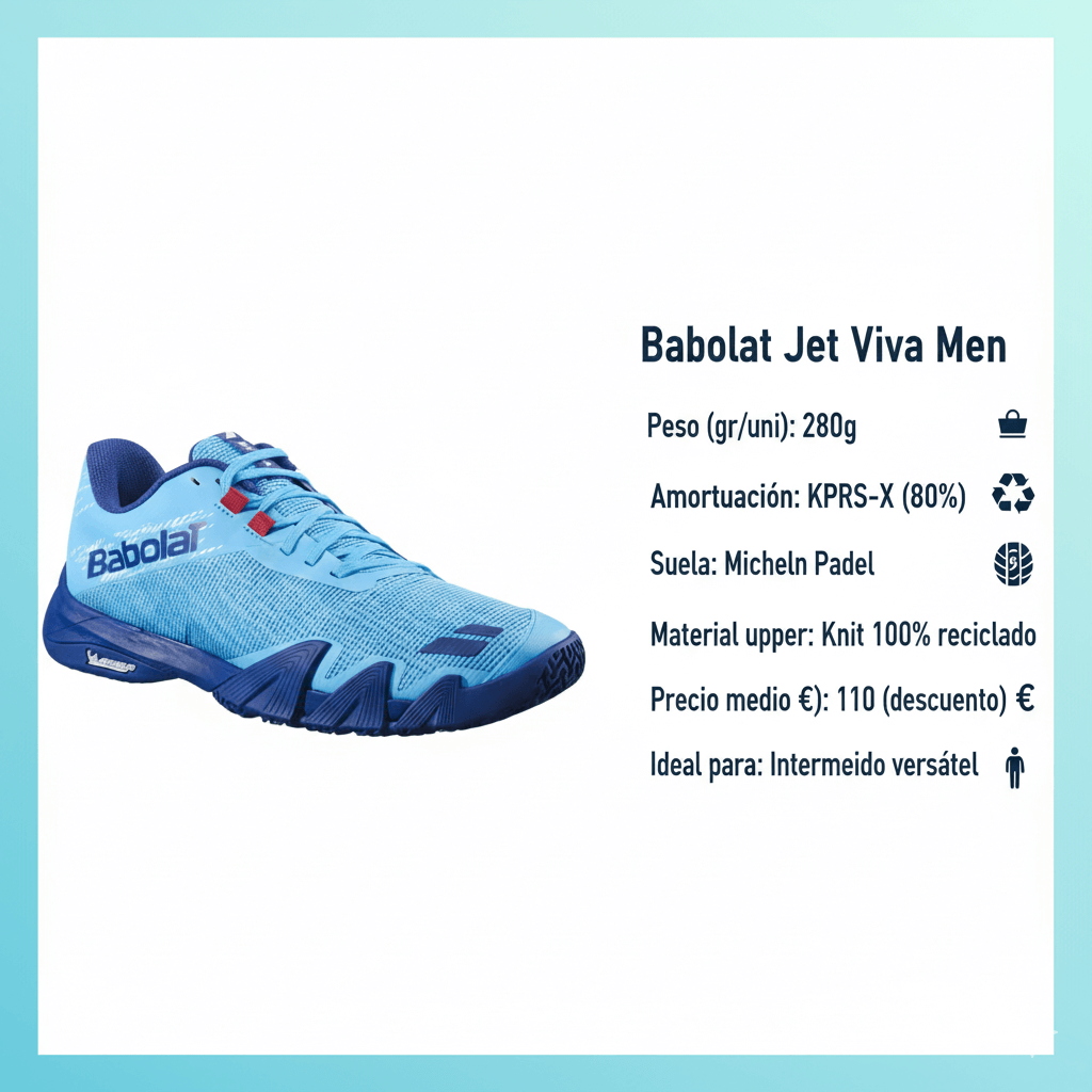 Las Babolat Jet Viva Men en color cyan blue/azul (referencia 3A0F25C934-4070) representan la evolución en calzado de pádel para 2025, priorizando ligereza extrema y rendimiento versátil en pistas de arena y césped artificial. Este modelo combina innovación tecnológica con sostenibilidad, ideal para jugadores intermedios que buscan agilidad sin sacrificar protección. A lo largo de este artículo, exploramos sus características, ventajas y por qué se posicionan como una opción líder en el mercado español.