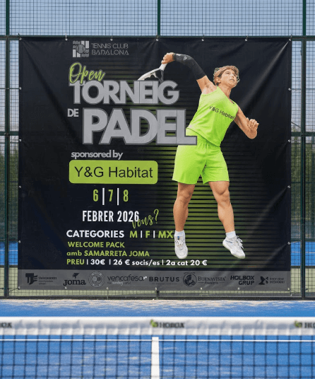 Y&G Habitat es el patrocinador principal del Tennis Club Badalona Y&G Habitat, aportando calidad y visibilidad al torneo. Este aliado local en hábitat y reformas apoya el pádel comunitario en Badalona.